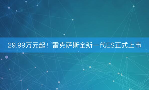 近日,LEXUS雷克萨斯全新一代ES 300h正式上市,零售价29.99万元,同步推出舒享副驾套装、多感纯享套装两款专属定制选装套装,价格分别为1.2万元和3万元。此外,全新一代ES纯电车型将于今年下半年上市。