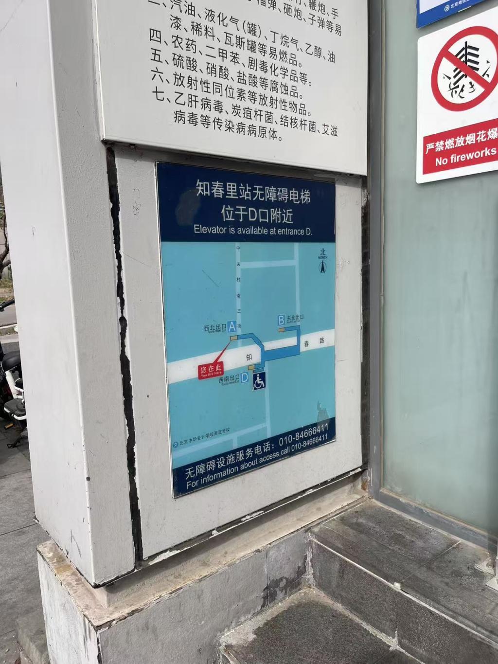 知春里站地铁口张贴的无障碍电梯提示。