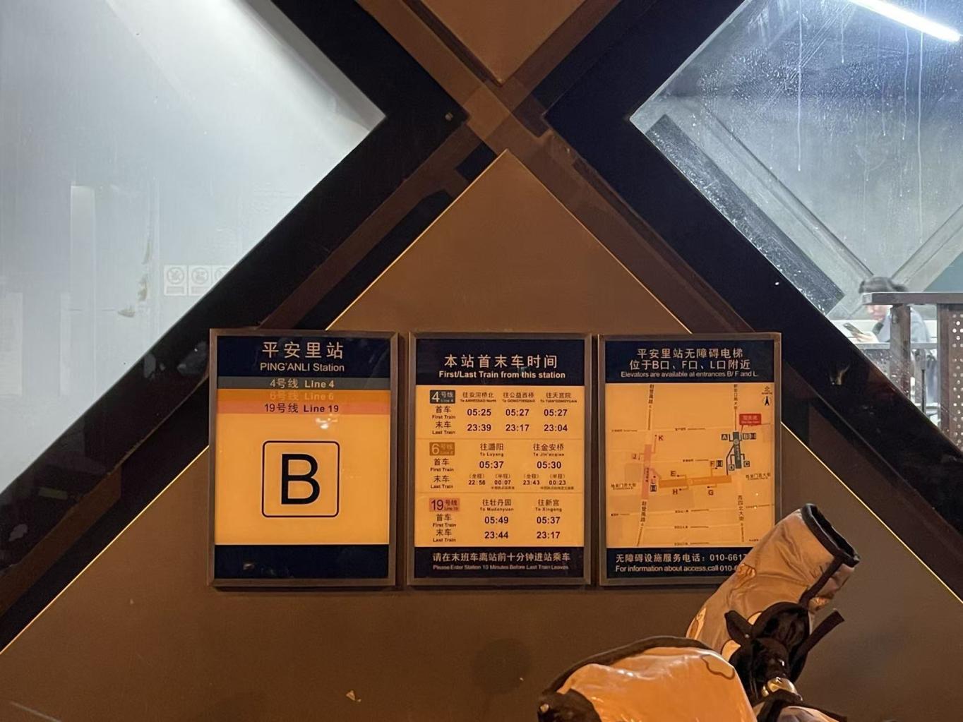 平安里站B口外张贴的无障碍电梯信息。
