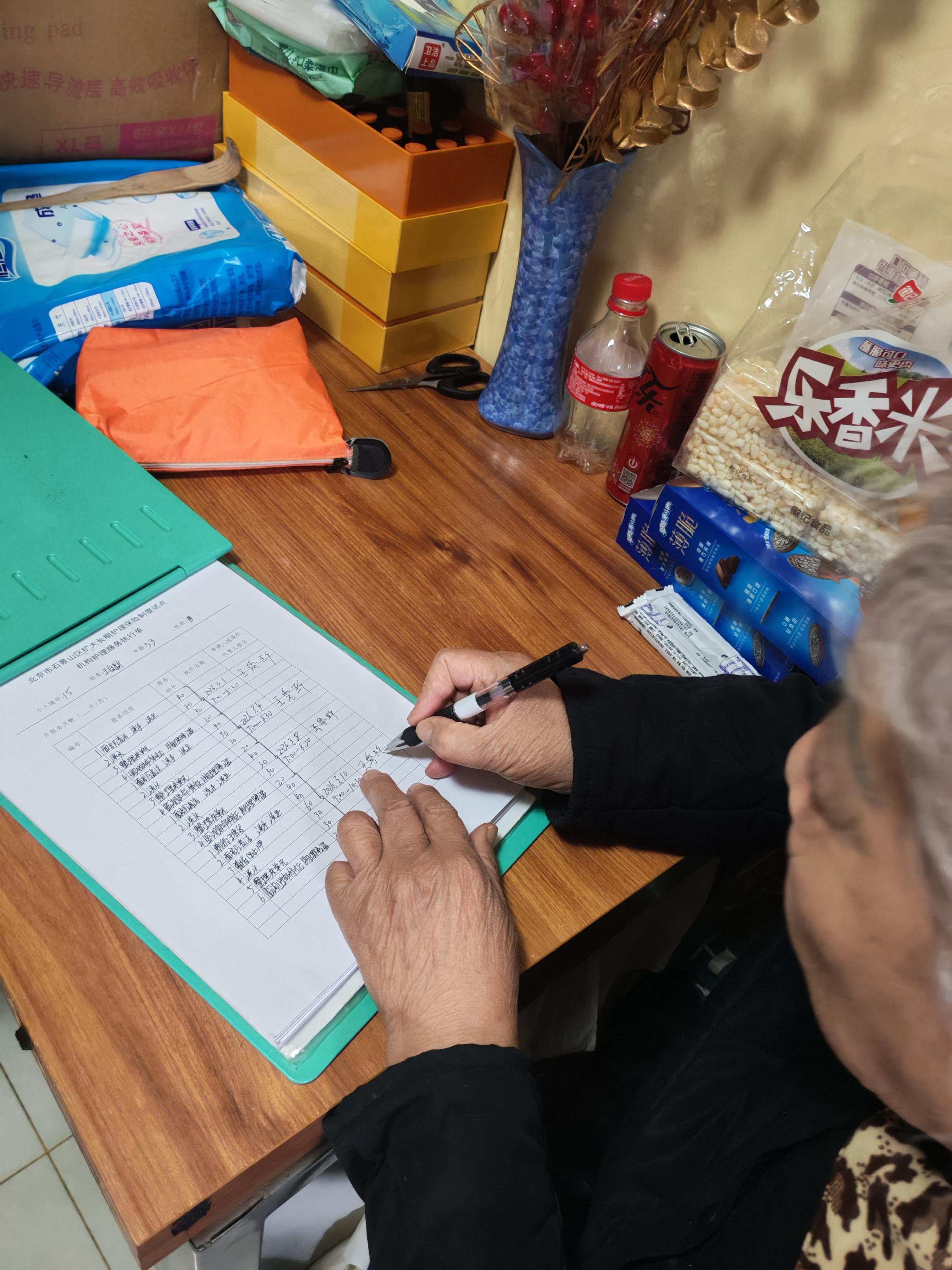 根据石景山长护险试点的相关规定,服务内容分为生活照护、治疗性照护、风险防范和功能维护共四大类32个服务项目,失能老人及家属可以根据自身实际需求按需“下单”,或根据服务机构的评估结果沟通“下单”项目,每月享受共12个小时的上门服务。